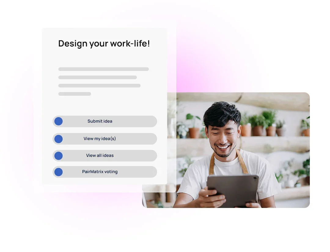 Essentially a modern version of the classic “idea box,” crowdsourcing lets you gather, prioritize, and put employee ideas into practice. You can run targeted challenges, manage idea lifecycles, and drive innovation from those closest to the work.